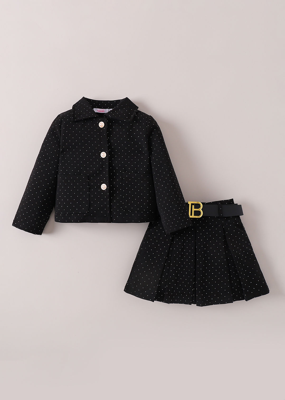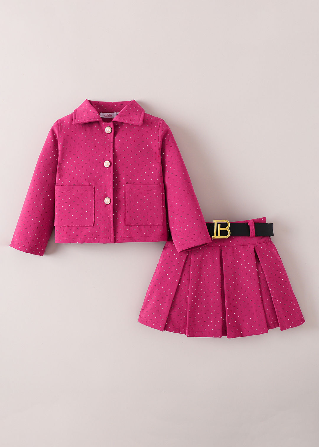 2-Pc Textured Fabric Collared Jacket & Skirt