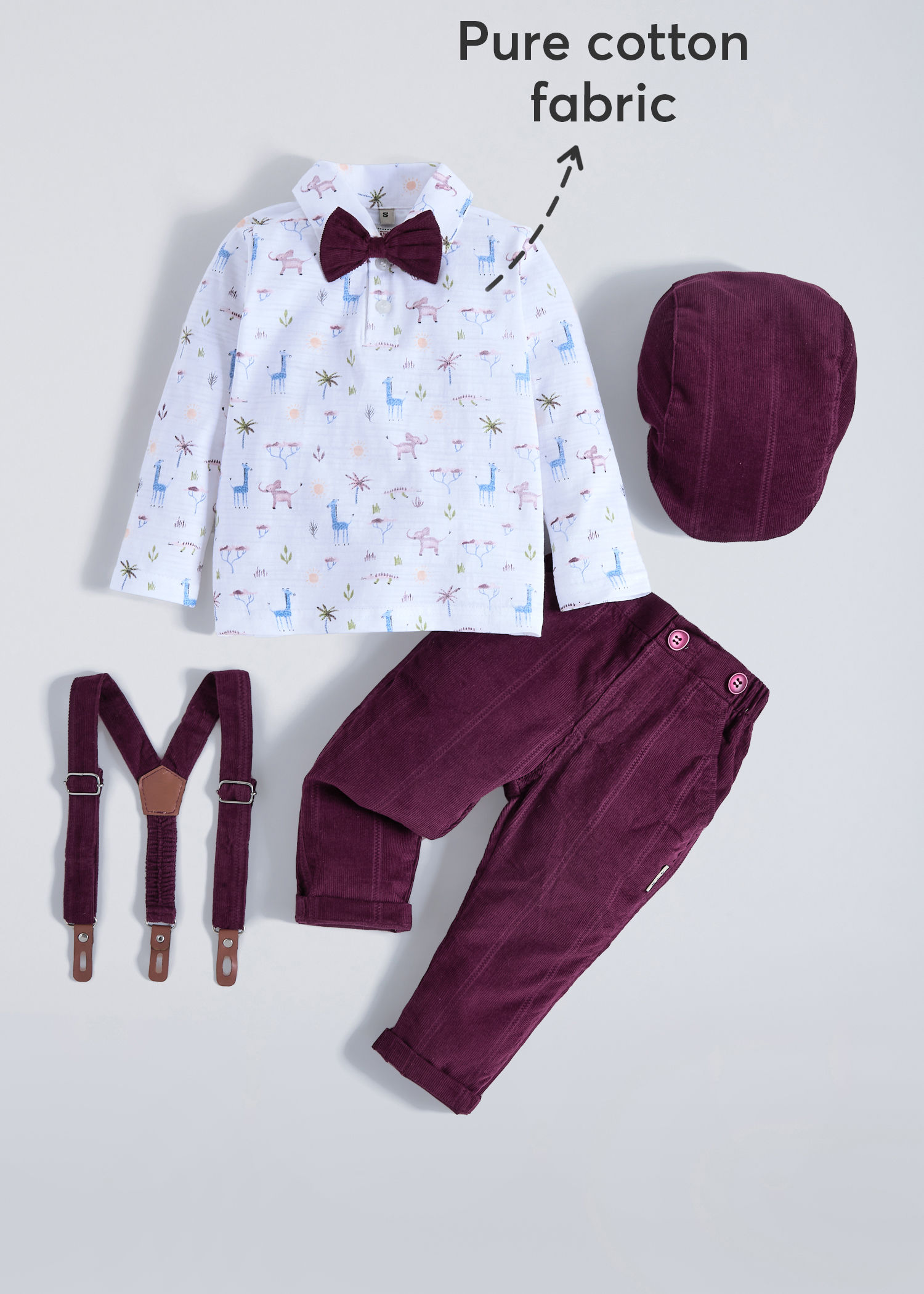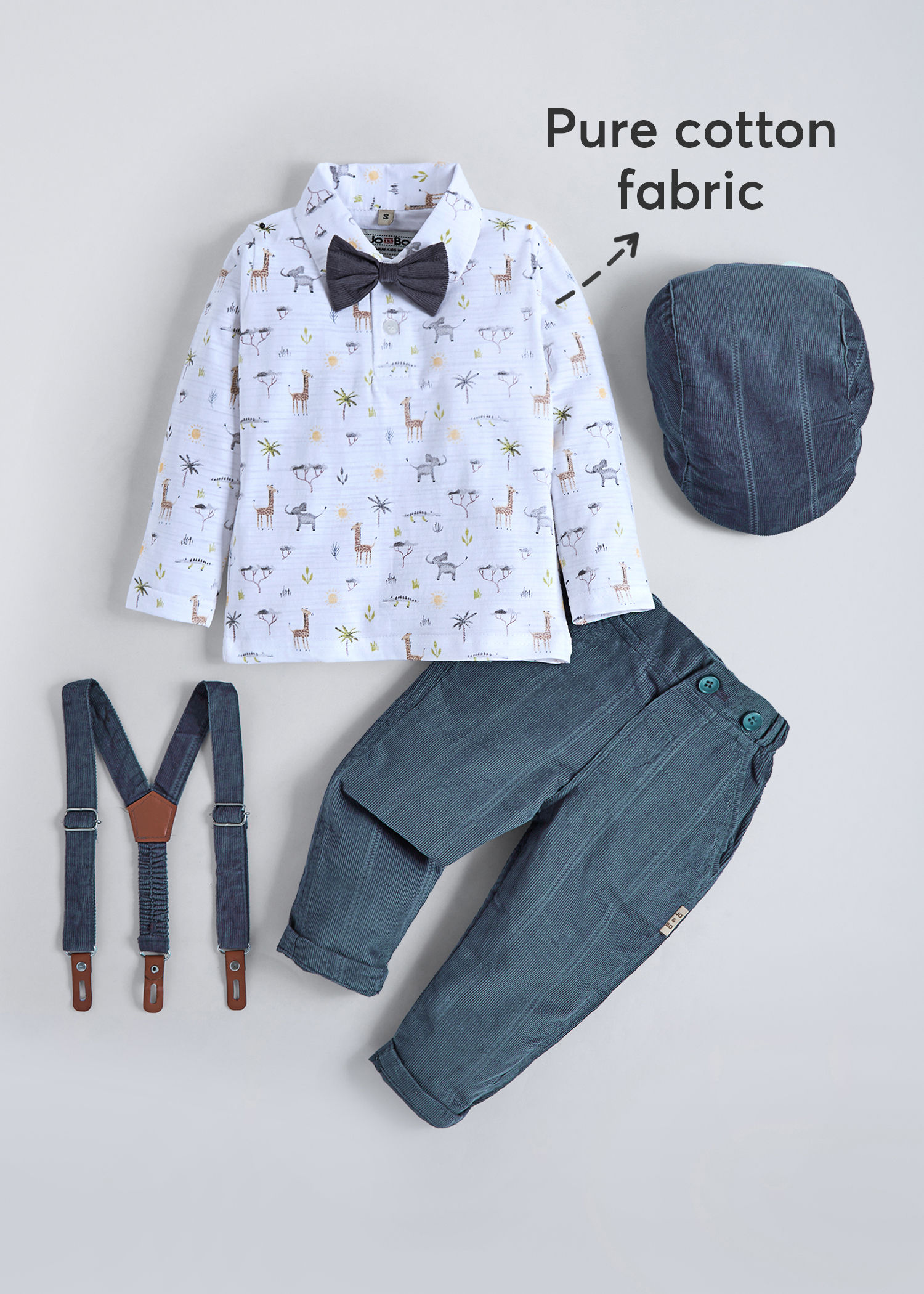 - 1 Shirt, 1 Pant, 1 Suspender, 1 Bow, 1 Cap